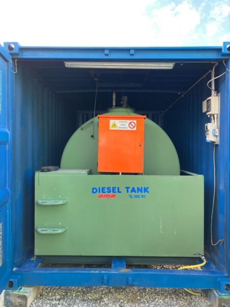 un vano da 4 metri con cisterna per gasolio da 9.000 litri, pompa di erogazione e sistema tipo distributore per il rifornimento mezzi in cantiere.