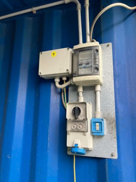 uno spazio da 2 metri con vasca di raccolta a 3 livelli per lo stoccaggio in sicurezza di oli esausti o prodotti chimici, completo di impianto elettrico interno con quadro e illuminazione;